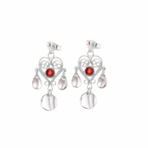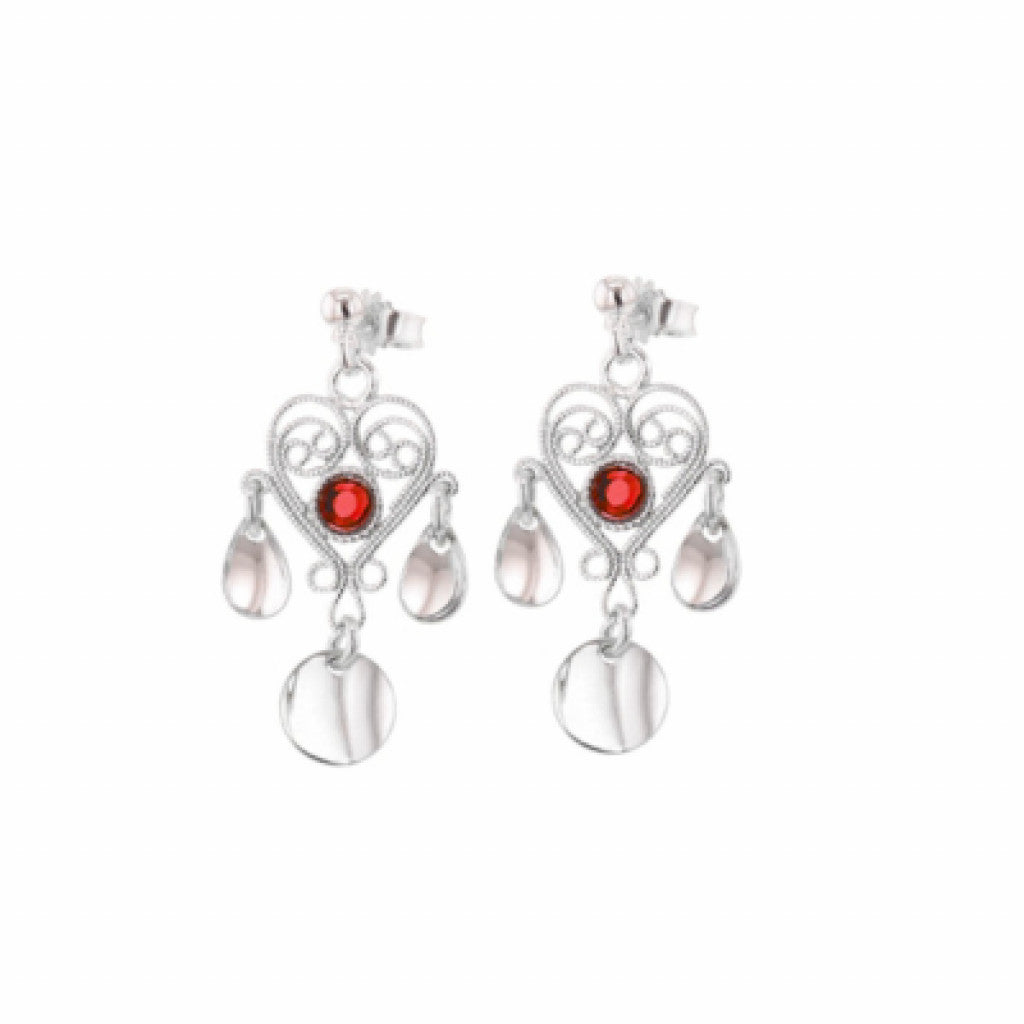 Øredobber Nostalgi Hjerte med Lauv - Rød Krystall / Sølv