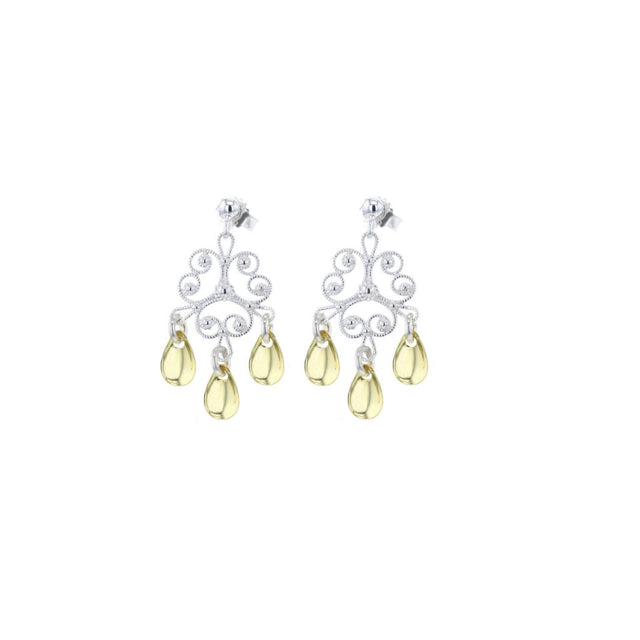 Ørepynt i sølv med forgylte detaljer, utformet med store nyreheng. Det elegante og klassiske designet gir et tydelig uttrykk som harmonerer godt med tradisjonelt antrekk og høytidsbruk.
