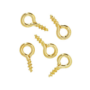 8 mm øyeskruer, for alle typer smykkeproduksjon og hobbyaktiviteter. Hele lengden på øyeskruen er 8 mm, jevnt fordelt mellom skrue og øye. For alle som jobber med leite er det bare å lage et lite hull i leiren før den herde og deretter lime fast skruen. Jobber du for eksempel med resin, må du la øyeskruen tørke på plass i resinet, ettersom den beskjedne størrelsen på skruen gjør den vanskelig å forsenke i hardere materialer. Pakken inneholder 50 øyeskruer. Gullfargede.