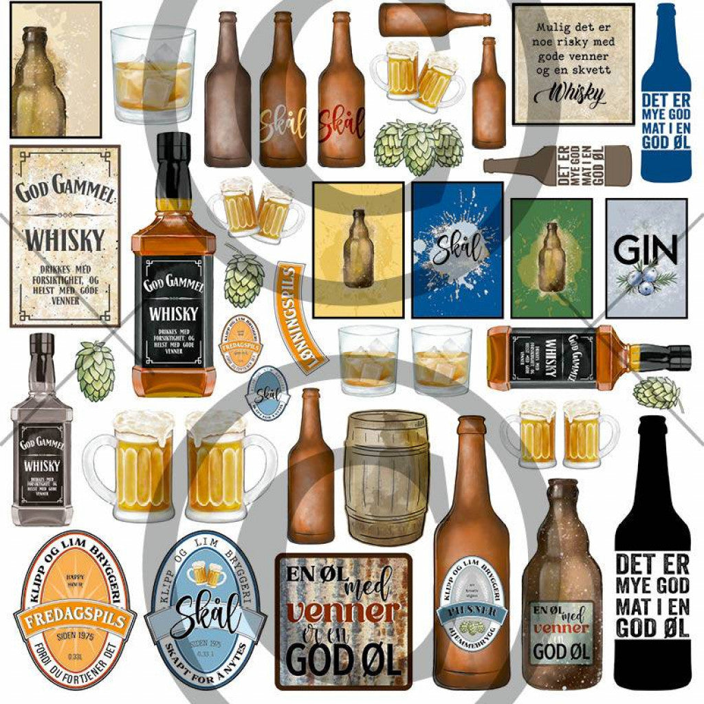 - Antall: Pakken inneholder 1 ark med detaljerte og autentiske Øl & Whiskey-motiver - perfekt for å legge til et maskulint preg i prosjektene dine.
