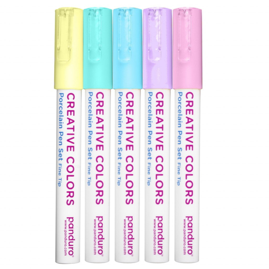 Creative Colors Fine Tip Porcelain Pen Set – porselenspenner for barn. Pennene har sterke farger og en spiss som gir en linjebredde på 1-2 mm. Den beste gaven er den som barna har laget selv og som dessuten kan brukes! For eksempel et krus, en vase eller et pyntefat. Med disse pennene kan barna tegne noe fint på porselen, som deretter kan brukes om og om igjen. I motsetning til vårt øvrige sortiment av porselenspenner er disse spesielt testet for å kunne brukes nettopp av barn fra 3 år og oppover.
