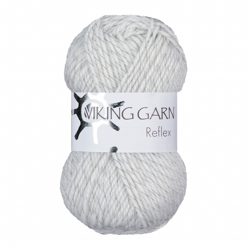 Viking reflexgarn består av 51% Ull fra Sør-Amerika, 34% Polyester, 15% reflex-tråd.