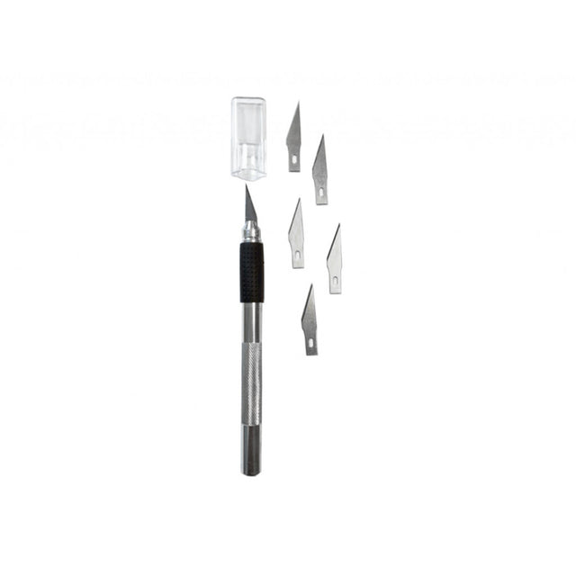 Kniv med skaft i aluminium med utskiftbare blad.